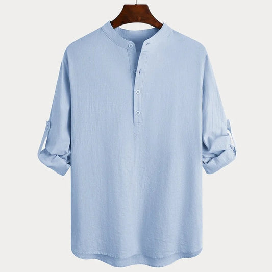 Men's Casual Cotton Linen Long Sleeve Shirt
